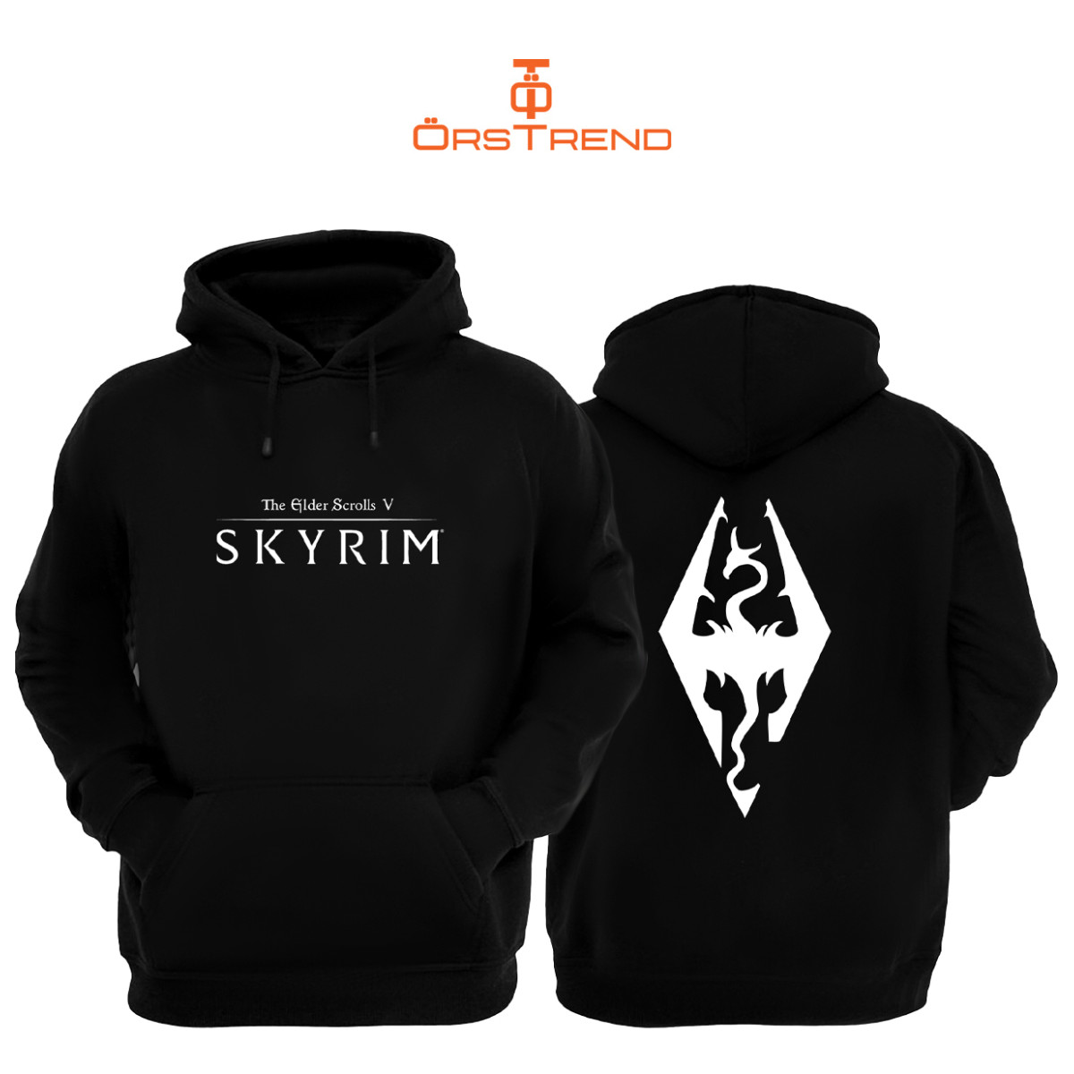 Skyrim Elder Scrolls Baskılı 3 Iplik Unisex Siyah Kapişonlu Sweatshirt
